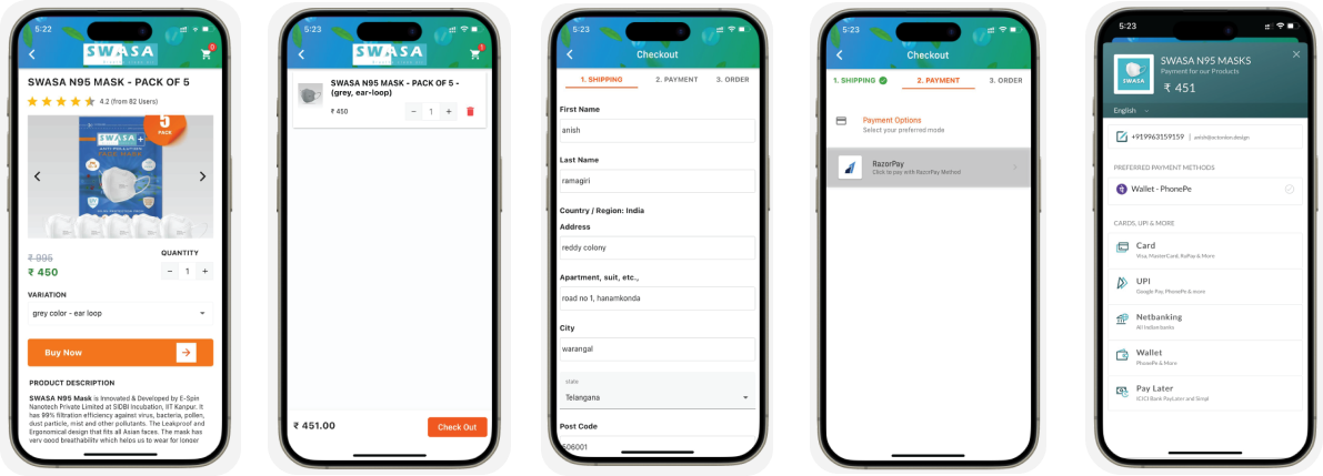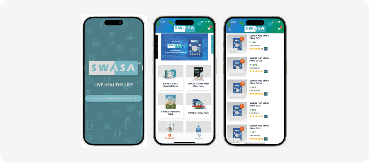 As the demand for high-quality face masks surged, SWASA needed to create a mobile application to serve its growing user base. The existing online presence had limitations in providing a seamless and engaging shopping experience. The app needed to:
