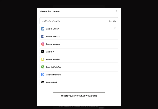 Add your unique vyldfyre URL to all the platforms and places you find your audience. Then use your QR code to drive your offline traffic online.